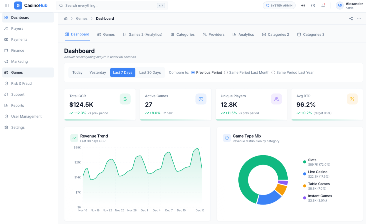 Real-time data visualization and player behavior analysis to optimize your operation.